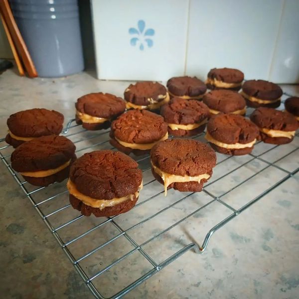 Take a cooled biscuit and smear some of the filling on one side then sandwich together with another biscuit. Repeat until all are filled.