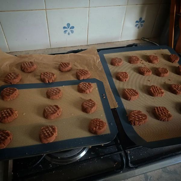Split the mixture into 32 small balls and place out evenly on the baking trays, making sure to leave enough of a gap between each.
