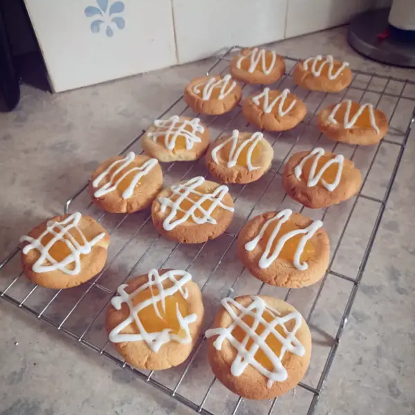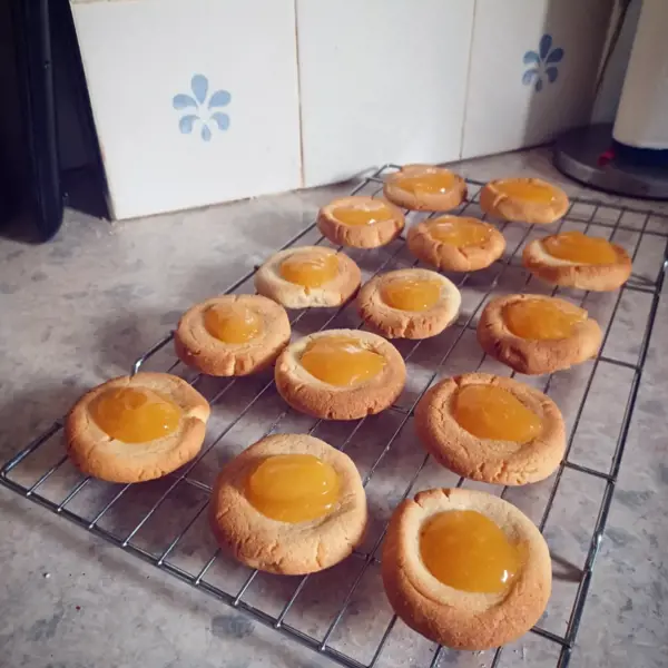 Once ready add to over and bake for 10-15 minutes or until the edges start to become golden. Once you remove from the oven use a teaspoon to help press the centre down to create a divot for the curd.