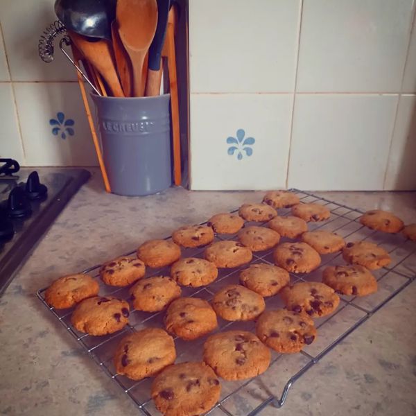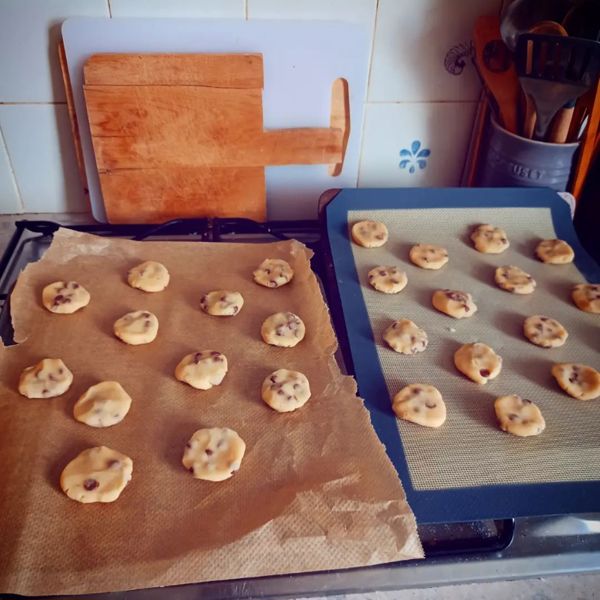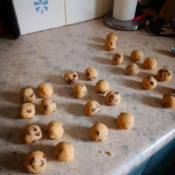 Flatten each of the balls our making sure they are all about the same depth and width, then place on your baking trays