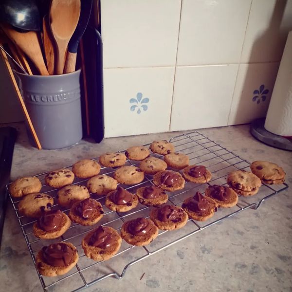Once ready remove from oven and place all on a cooling rack and allow them to thoroughly cool otherwise the nutella will melt as you try to put them together.